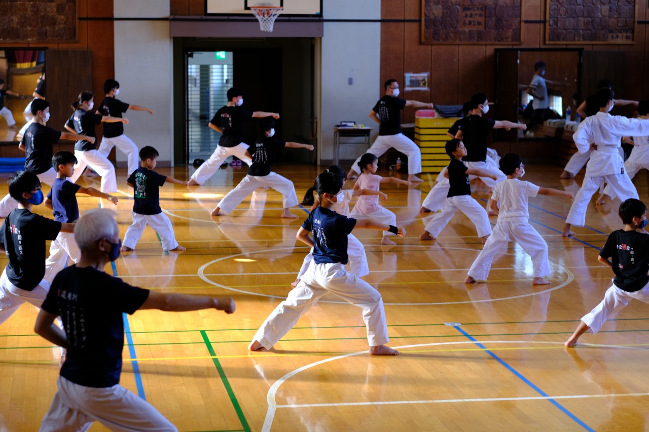 百錬塾では空手の「技」の習得だけでなく、少人数開催の稽古・全体稽古のそれぞれを活用し、「何をすべきか」「何を求められているか」を考える機会を与え、ゆったりと周囲を見渡す事の出来る「心(余裕を持った平常心)」を身に着ける事を大事にしています。